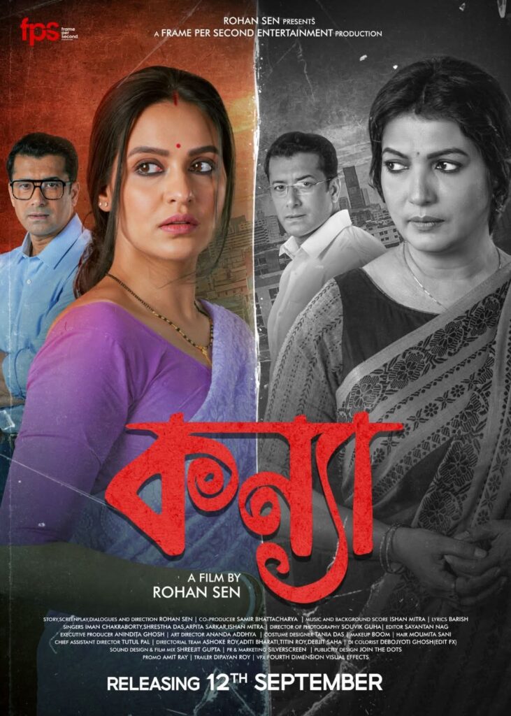 Kanya (2025) is a Bengali-language family drama directed by Rohan Sen, released in September 2025. The film runs for around 1 hour and 38 minutes and focuses on the fragile bonds between two estranged sisters who are forced to confront their shared past.
